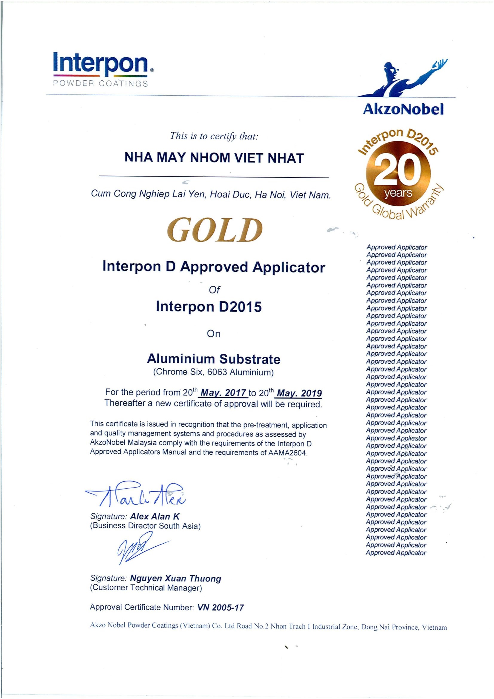 Giấy chứng nhận bảo hành 20 năm