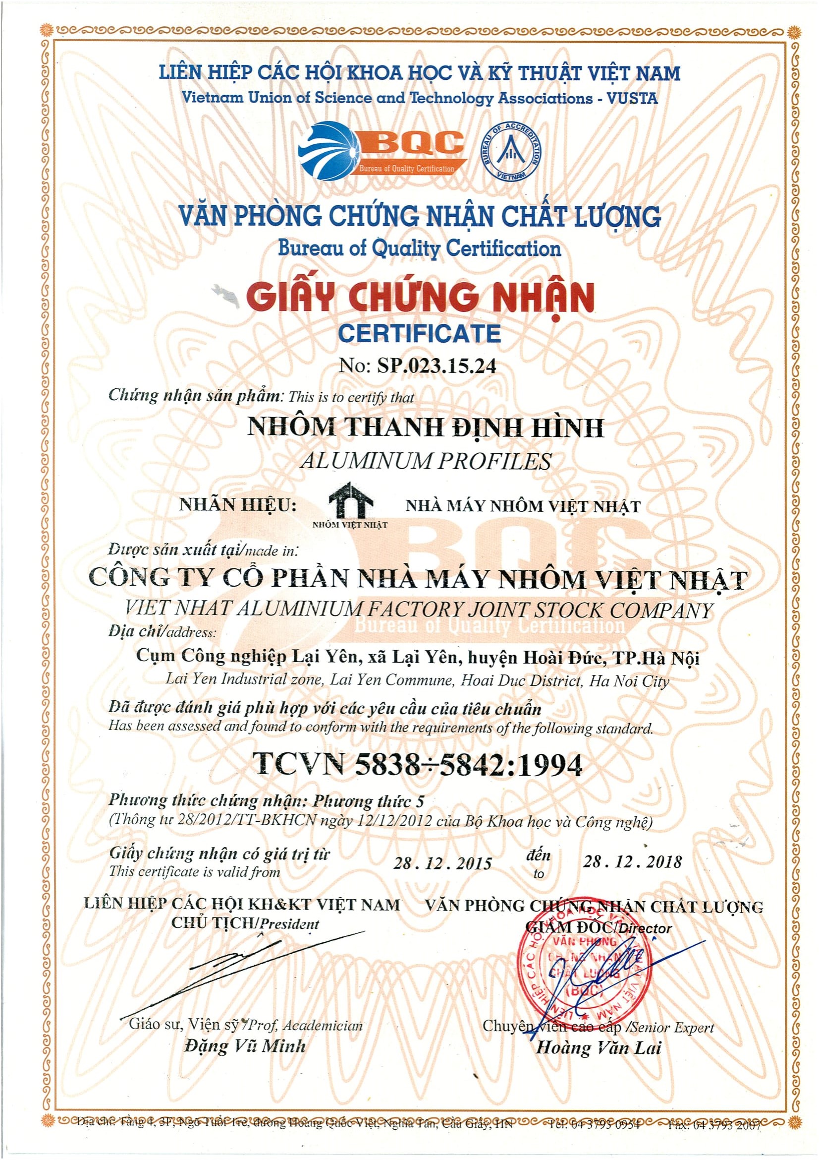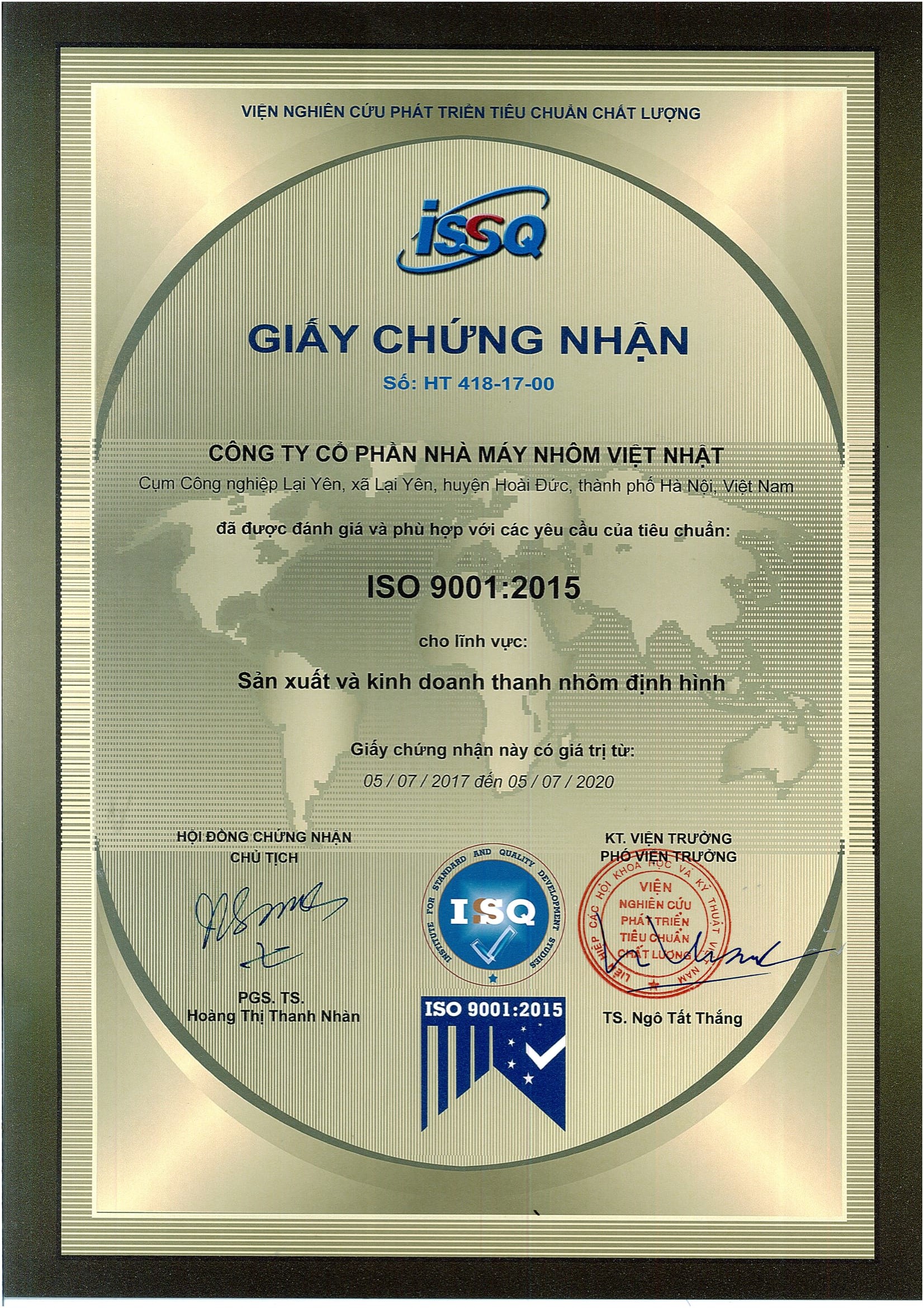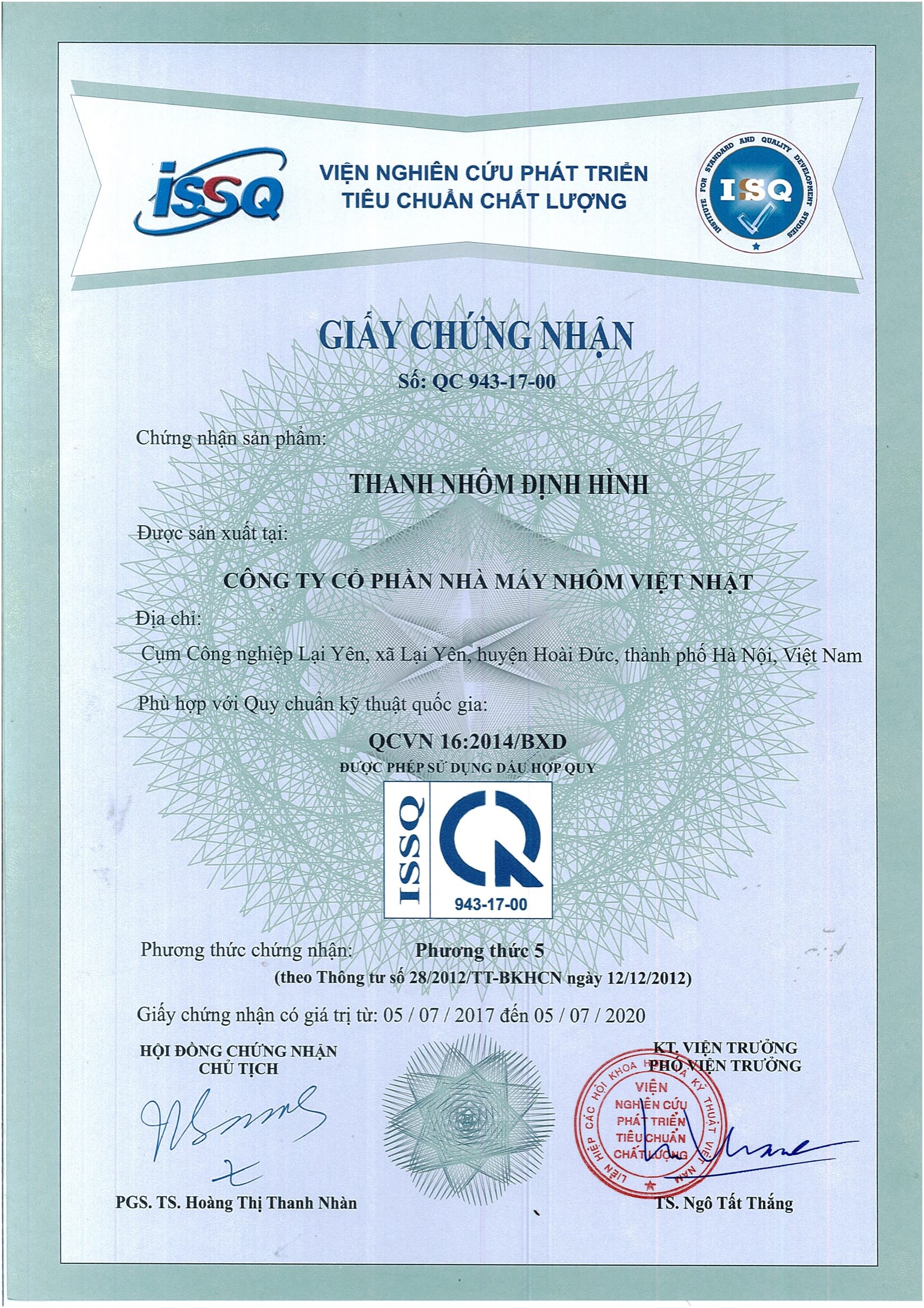 Giấy chứng nhận nhôm định hình