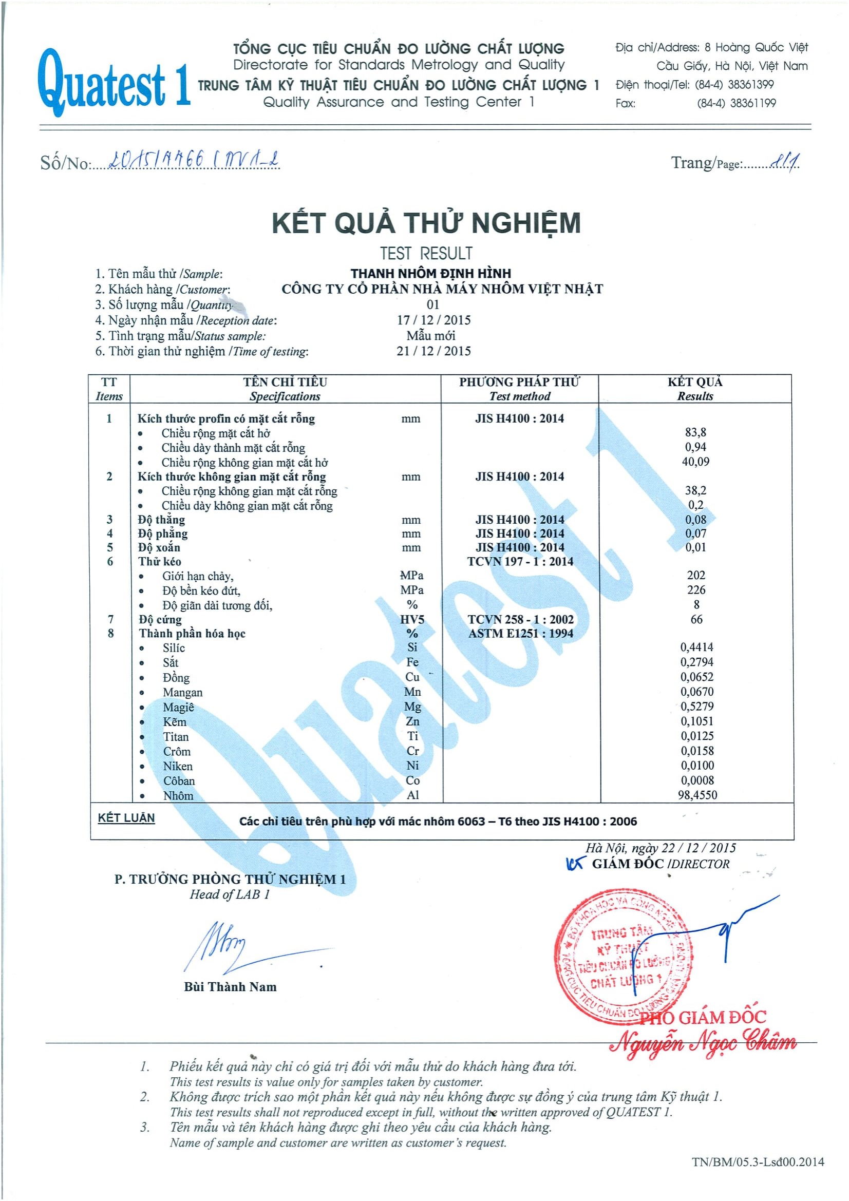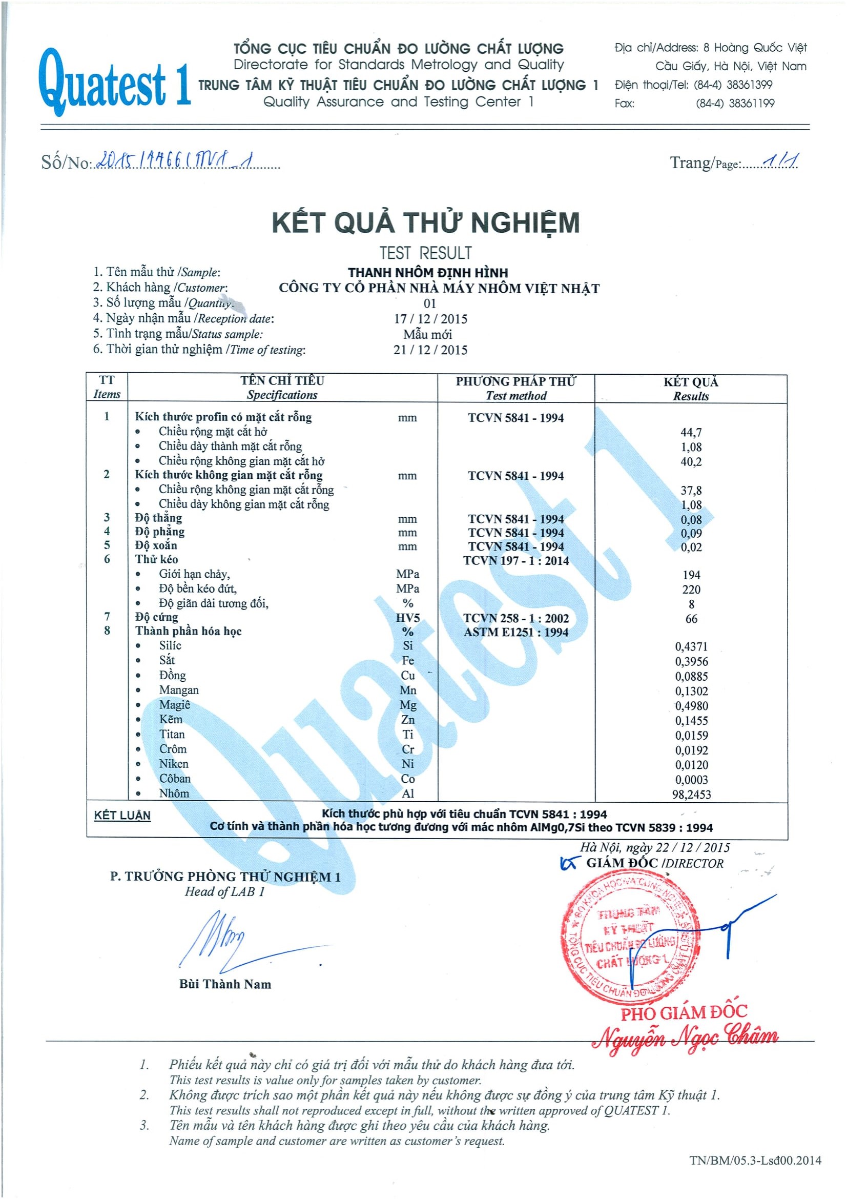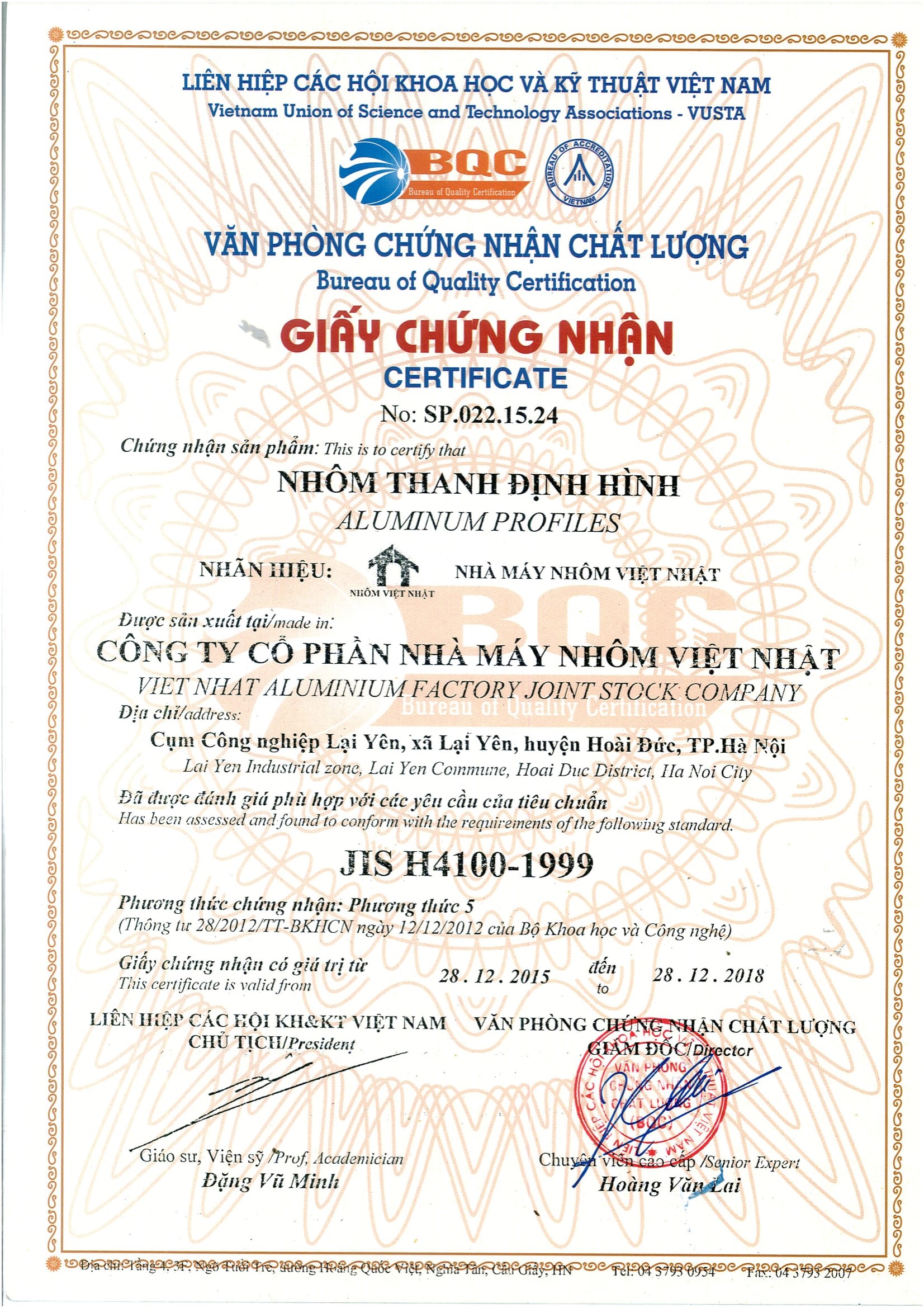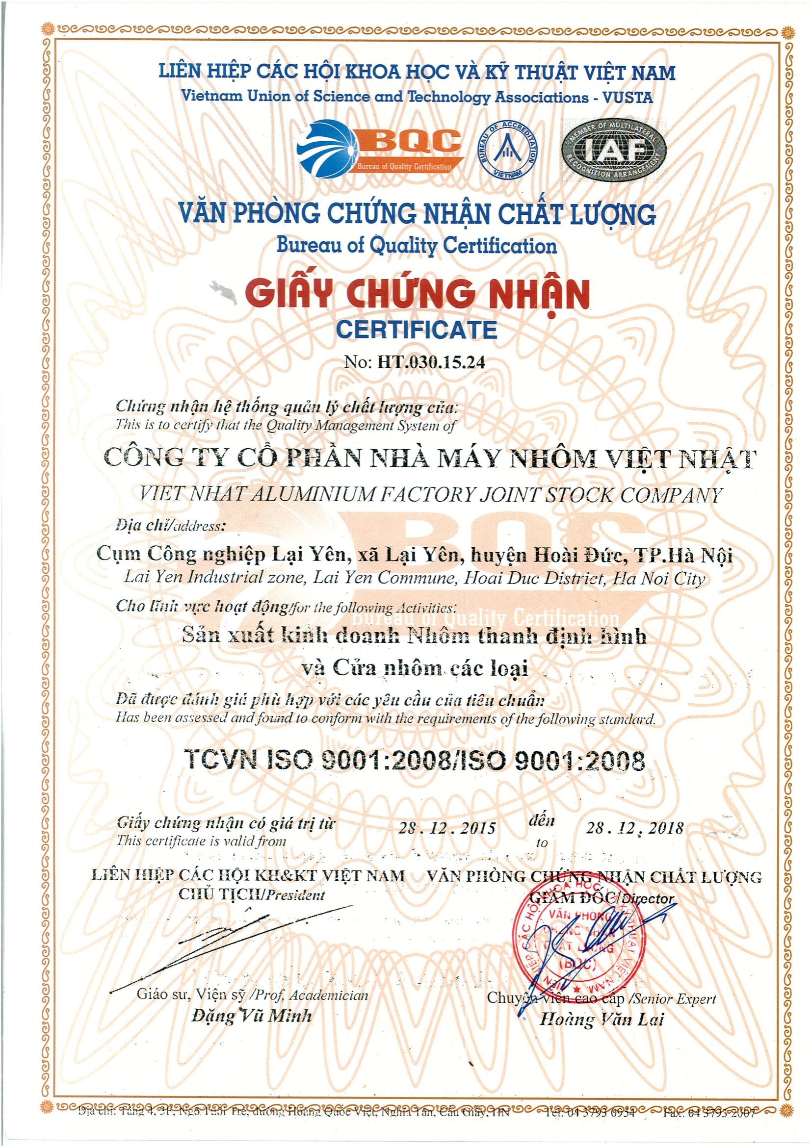 Giấy chứng nhận nhôm định hình